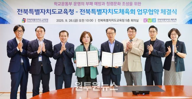 (원투원뉴스) 전북특별자치도교육청과 전북특별자치도체육회가 공정하고 투명한 학교 운동부 환경 조성을 위해 손을 맞잡았다.