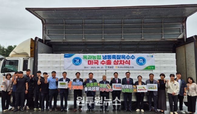 (원투원뉴스) 곡성군이 지난 25일 옥과농협 농산물유통센터(APC)에서 미국으로 수출하는 흑찰옥수수의 첫 상차식을 개최했다.