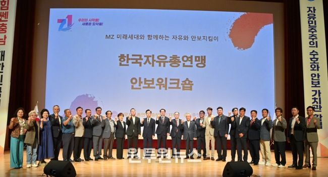 (원투원뉴스) 김태흠 충남도지사는 26일 도청 문예회관에서 열린 한국자유총연맹 충청남도지부 안보 워크숍에 참석, 특강을 가졌다.
