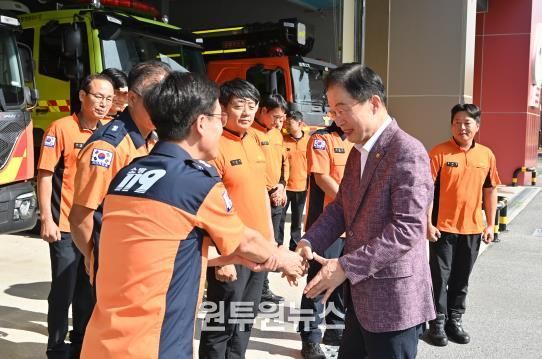 이번 방문에는 지역구 도의원과 지역 교육장이 함께해 뜻을 더했으며, 특히 소방서 5곳에는 국가보훈부 성금으로 위문금이 지원돼 지난 3월 산불 진화에 헌신한 소방관들의 노고를 위로하고 감사의 뜻을 전했다.