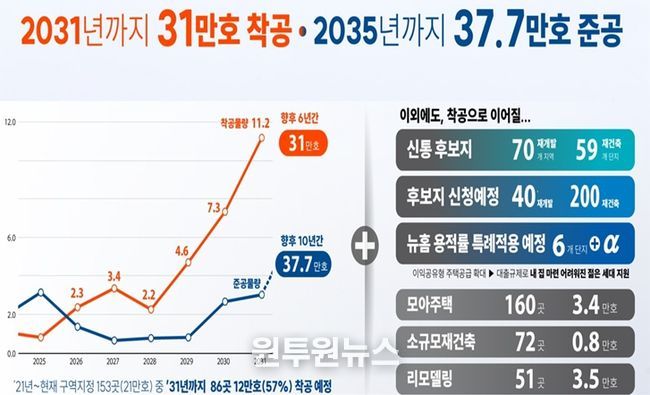 한편 서울시는 ‘신속통합기획 시즌 2’ 본격 가동을 통해 2031년까지 총 31만 호 착공, 2035년까지 37만 7천 호 준공 계획이다. 현재 정비구역 지정을 앞둔 사업장과 모아주택 등 소규모정비사업, 리모델링 물량까지 더하면 2031년까지 최대 39만 호 이상 공급이 가능한 물량이다.