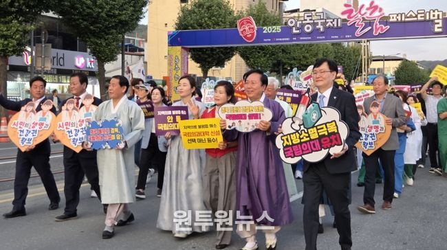 (원투원뉴스) 안동시는 2025년 안동국제탈춤페스티벌 원도심 거리 퍼레이드에서 9월 26일, 27일, 28일 세 차례 경북 국립의대 유치를 위한 퍼포먼스를 진행했다. 오는 10월 4일 한 차례 더 진행해, 총 4회의 거리 퍼포먼스에 참여할 계획이다.
