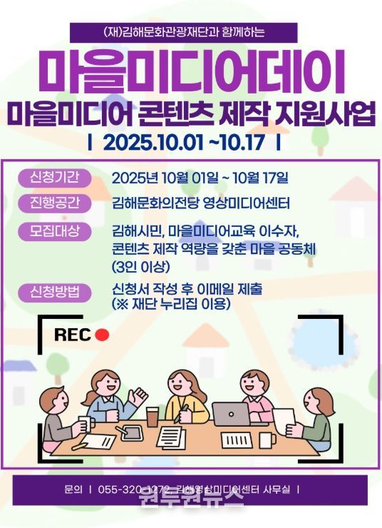 (원투원뉴스) 재)김해문화관광재단 영상미디어센터는‘마을미디어 데이(day)’시민참여단을 모집한다.