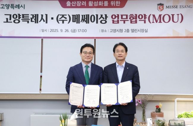 한편 ㈜메쎄이상은 국내 대표 전시 주최사로, 임신·출산·육아 분야 최대 규모의 박람회인 코베 베이비페어를 비롯해 다양한 전시회를 개최하고 있다. 부모와 아이를 위한 건강한 육아문화 확산에 앞장서는 기업으로, 이번 협약을 통해 고양특례시와 함께 출산 친화 분위기 확산에 힘쓸 예정이다.