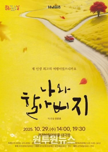 (원투원뉴스) 포천문화관광재단은 연극 ‘나와 할아버지’를 오는 10월 29일 포천반월아트홀 대극장에서 오후 2시와 오후 7시 30분, 1일 2회 공연으로 선보인다.