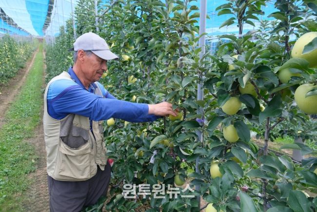 김 씨가 재배 중인 시나노골드는 일본 나가노현에서 개발된 품종으로, 당도가 높고 과즙이 풍부하며 저장성이 뛰어나 소비자들에게 큰 인기를 끌고 있다.