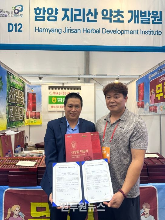 (원투원뉴스) 경남 함양농협에서 운영하는 지리산약초개발원이 2025제천국제한방천연물산업엑스포에서 해외 기업과 연달아 수출협약을 체결하며 주목받고 있다.
