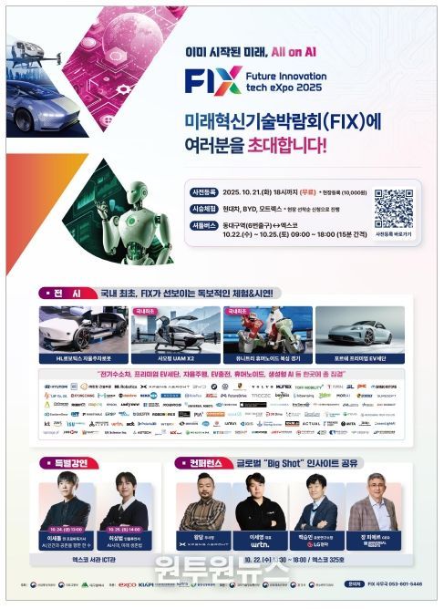 이에 FIX 2025가 새 정부의 미래산업 정책에 부응하는 지역 의지를 천명하는 뜻깊은 자리가 될 수 있도록, 각 전시관별로 지역기관 및 기업과 협력하는 공동관을 조성해 ‘AI 로봇수도’, ‘AX 연구개발 허브’로서 다시 뛰는 대구의 비전을 담아낼 계획이다.