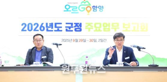(원투원뉴스) 함양군은 9월 29일부터 30일까지 2일간 군청 소회의실에서 ‘2026년도 군정 주요 업무 보고회’를 개최했다.