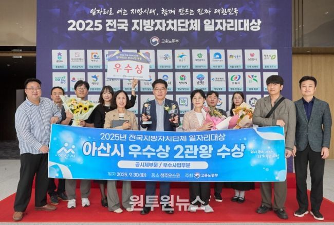 (원투원뉴스) 충남 아산시가 고용노동부 주최 ‘2025 전국 지방자치단체 일자리 대상’에서 지역 일자리 목표 공시제와 우수사업 부문 모두 우수상을 거머쥐며 2관왕에 올랐다. 충남에서 두 부문을 동시에 수상한 지자체는 아산시가 유일하다.