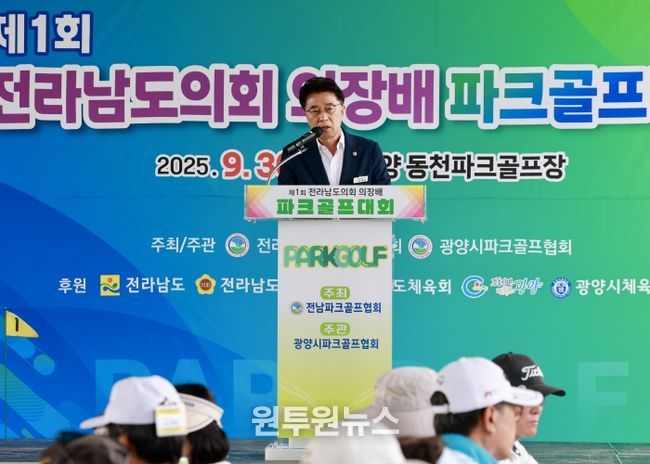 (원투원뉴스) 전라남도의회 김태균 의장은 9월 30일 광양 동천파크골프장에서 개최된 ‘제1회 전라남도의회 의장배 파크골프대회’ 개회식에 참석하여 선수와 임원들을 격려했다.