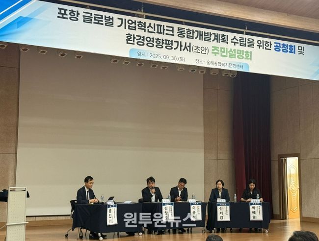 (원투원뉴스) 포항시는 30일 흥해종합복지문화센터에서 ‘포항 글로벌 기업혁신파크 선도사업’ 공청회 및 주민설명회를 열고 지역 주민과 전문가 의견을 수렴했다.