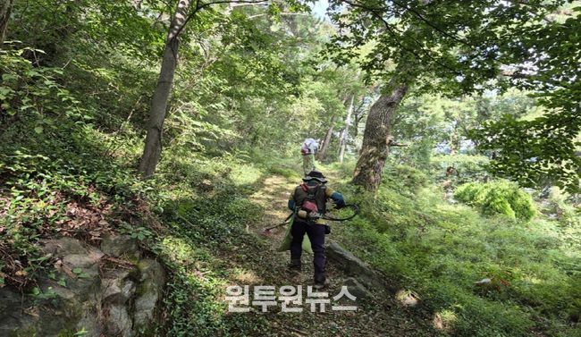 특히 무성하게 자란 풀로 인해 등산로가 협소해지거나 시야가 가려지는 구간과 등산객 편의를 고려한 휴식공간 주변을 중점적으로 정비해 보행 불편과 안전사고 위험을 예방했다.