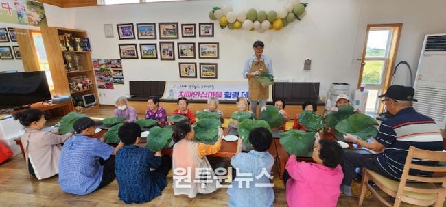 (원투원뉴스) 서천군 보건소 치매안심센터는 지난 29일 한산면 동산리 치매안심마을 주민들을 대상으로 ‘연잎밥 만들기 힐링 프로그램’을 운영해 큰 호응을 얻었다.