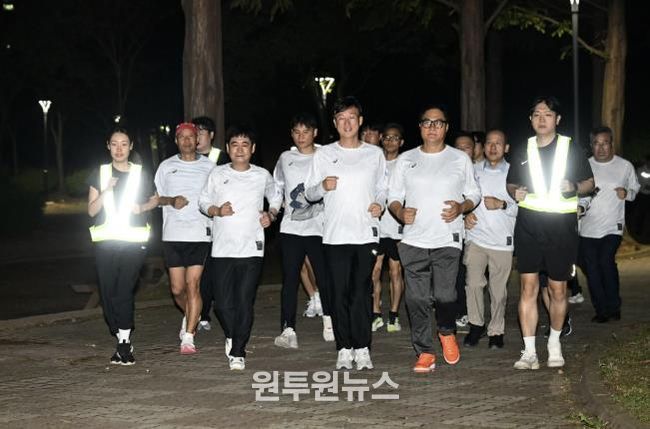 (원투원뉴스) 안산시는 지난달 30일 안산상록경찰서 및 자율방범대 상록연합대와 공동으로 안산호수공원에서 ‘공원·하천 범죄예방 강화를 위한 런닝순찰대 발대식을 개최하고 첫 합동순찰을 전개했다고 1일 밝혔다.