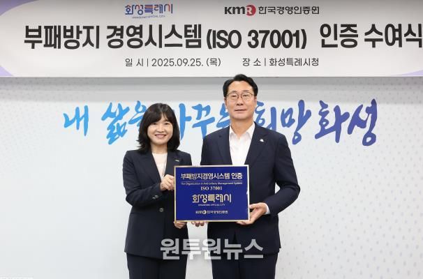(원투원뉴스) 화성특례시가 국제표준화기구(ISO)에서 제정한 부패방지경영시스템 (ISO37001) 인증을 획득했다.