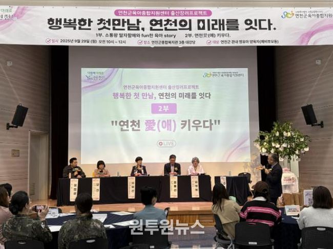 (원투원뉴스) 연천군육아종합지원센터는 지난달 29일, 연천군종합복지관 3층에서 “행복한 첫만남, 연천의 미래를 잇다 – 연천애 키우다 토크쇼”를 개최했다.