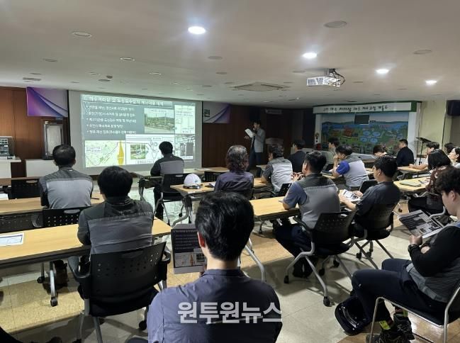 이번 교육은 하수처리시설 내 풍수해, 지진, 정전 등 각종 재난 발생에 대비해 대응 역량을 강화하기 위해 마련됐으며, 시설 담당 공무원과 운영 인력 등 30여 명이 참여했다.