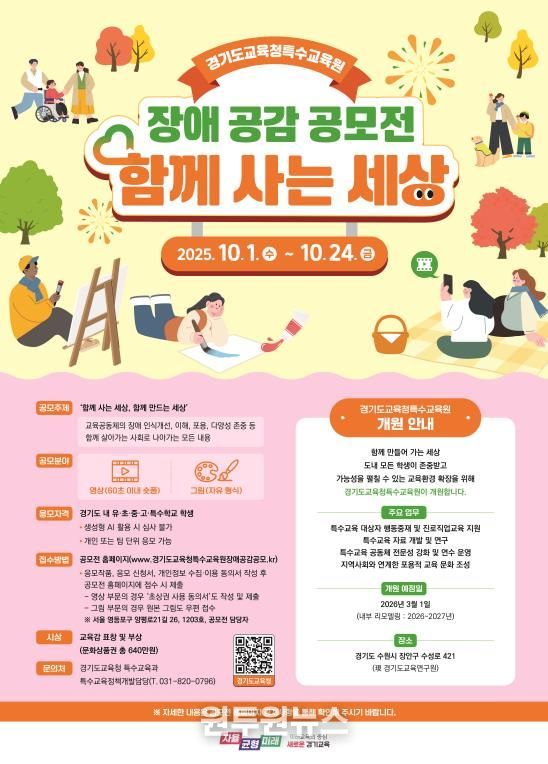 이번 공모전은 2026년 3월을 목표로 개원을 준비 중인 (가칭)경기도교육청특수교육원 설립을 앞두고, 장애 공감 문화 확산과 장애 인식 개선, 도민과 함께 적극 소통하기 위한 취지로 마련했다.