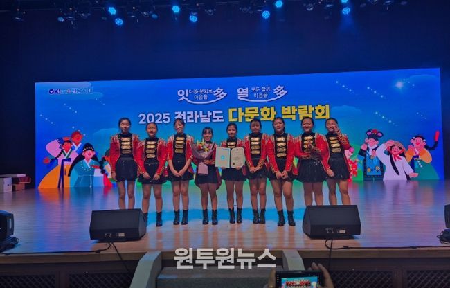 (원투원뉴스) 전남 곡성군은 지난 27일 화순 하니움문화스포츠센터에서 개최된 ‘2025년 전라남도 다문화 박람회’의 전라남도 문화예술 경연대회에서 곡성지역아동센터의 어린이 난타 “투드림 난타팀”이 우수상을 받았다고 전했다.