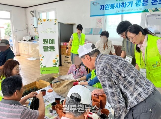 (원투원뉴스) 제주특별자치도사회서비스원은 지난 9월 30일, 성산읍 신풍리경로당에서 어르신들과 함께하는 원예 자원봉사 활동을 실시했다.
