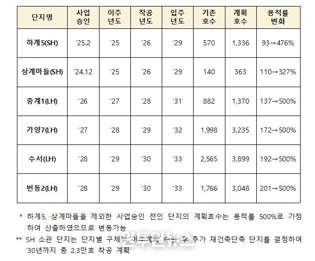 이어서 단지별 이주대책 마련 후, ’28년 중계1단지, ’29년 가양7, ’30년 수서·번동2 등 총 2.3만호 규모의 재건축을 순차적으로 착공할 예정이다.