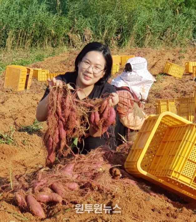 농사꾼인 남편 박명주 씨와 함께 농사를 지으며 아이들 이유식을 계기로 친환경 농산물의 필요성을 절감했다. 현재는 친환경 인증을 받은 고구마를 생산하고 있다.