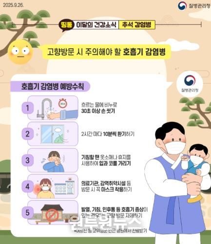 (원투원뉴스) 울주군보건소가 추석 연휴 기간 고향 방문 및 가족 모임 증가에 따라 호흡기 감염병 예방수칙 준수를 당부한다고 1일 밝혔다.