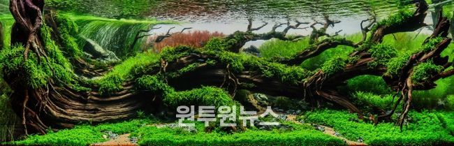 특히 지리산 자락 계곡의 흐름과 유려한 형상의 나무들에 영감을 받아 수조 안을 재현해 국내 출품작 중 가장 좋은 평가를 받았다.