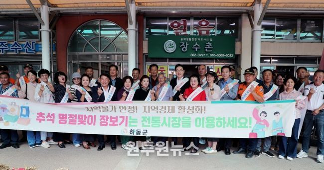 행사에는 하동군수를 비롯한 관내 관련 기관 임직원, 사회단체 회원 등 200여 명이 참여해 신선한 농수산물과 추석 제수용품을 직접 구매하며 따뜻한 명절 분위기를 느끼게 했다.