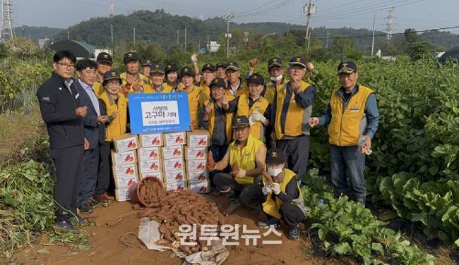(원투원뉴스) 파주시 조리읍 실버경찰대는 지난 1일 직접 가꾼 고구마 20상자를 수확해 행복나눔협의체(위원장 오승환)에 기탁했다고 밝혔다.