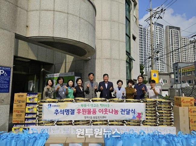 (원투원뉴스) 수원시 장안구 정자1동은 지난 1일, 추석 명절을 앞두고 관내 단체, 기업, 개인 등에서 기탁한 성금과 물품을 어려운 이웃들에게 전달하는 ‘추석 이웃사랑 나눔 전달식’을 개최했다.