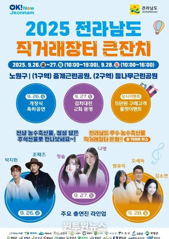 (원투원뉴스) 전남 영암군은 지난 9월 26일부터 28일까지 서울시 노원구 중계근린공원에서 열린'2025 전라남도 직거래장터 큰잔치'에 참여해 대표 농특산물인 무화과, 배, 멜론을 선보이며 총 1천200만 원의 판매 실적을 거뒀다고 29일 밝혔다.