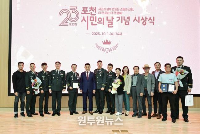 (원투원뉴스) 포천시는 지난 1일 시청 대회의실에서 제23회 포천시민의 날을 기념해 2025년 한 해 동안 지역 발전에 기여한 유공자들을 대상으로 표창 수여식을 개최했다.