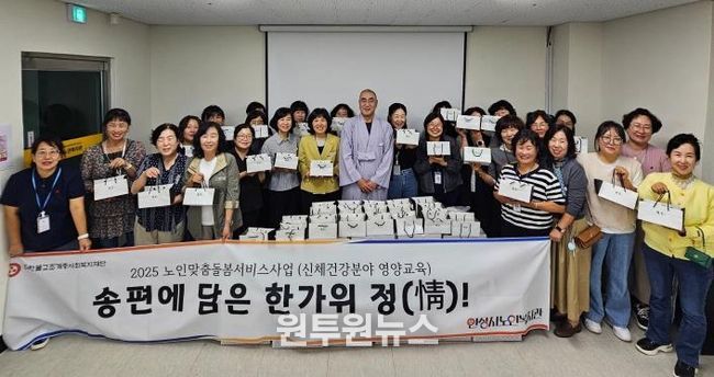이번 사업은 노인맞춤돌봄서비스 대상 어르신 750명을 대상으로 송편 나눔과 함께 영양교육을 함께 진행하여, 명절의 따뜻한 분위기를 전하고 건강한 식습관 형성에 기여하고자 마련됐다.