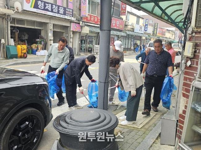 (원투원뉴스) 지난 10월 1일 오전 9시부터 일죽면 시가지 일원에서 추석명절을 앞두고 이장단협의회에서는 ‘지역사랑 환경정화활동’을 진행했다. 약 한 시간 동안 진행된 이번 행사에는 일죽면이장단협의회 이장 40여명이 참여했다.
