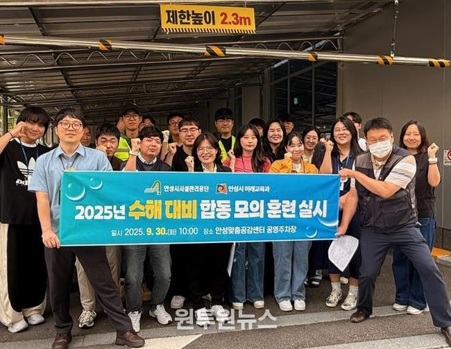 (원투원뉴스) 안성시시설관리공단은 지난 30일 오전10시 안성 맞춤공감센터 공영주차장에서, 안성시 미래교육과 청소년팀과 국지성 집중 호우 등 자연재해로부터 시설과 인명을 보호하기 위한 2025년 수해대비 합동 모의 훈련을 실시했다고 밝혔다.