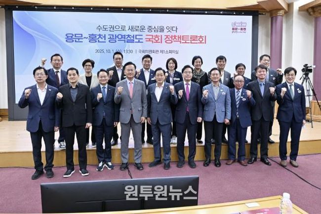 (원투원뉴스) 양평군은 지난 10월 1일 국회의원회관에서 ‘용문~홍천 광역철도 국회 정책토론회’를 성황리에 개최했다. 이번 토론회는 김선교 국회의원과 유상범 국회의원, 경기도, 강원도, 양평군, 홍천군, 강원연구원이 공동 주최하고, 강원도민일보가 주관했다.