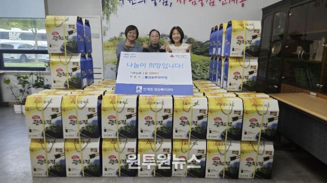 (원투원뉴스) 통영돌문어보쌈에서 다가오는 추석을 맞아 지난 10월 2일, 인계동 행정복지센터에 김 100박스를 전달했다.