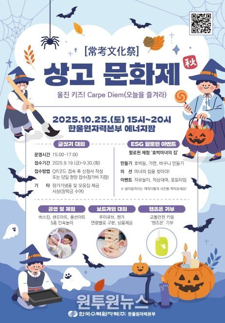 (원투원뉴스) 한국수력원자력(주) 한울원자력본부)는 10월 25일 15시 한울에너지팜에서 제2회 ‘한울 상고문화제 가을(秋)편’ '울진 키즈! Carpe Diem(오늘을 즐겨라)'를 개최한다.