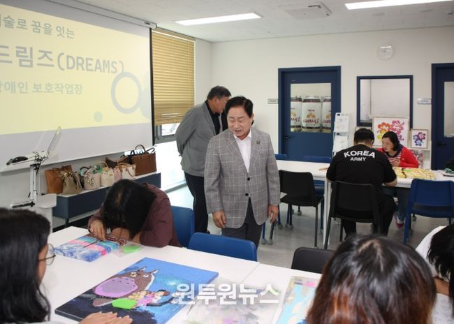이날 주광덕 시장은 다산동에 위치한 드림즈 장애인보호작업장과 진건읍 송능리에 위치한 남양주 시니어클럽 공동작업장을 방문해 노인·장애인 근로자들을 격려하고 소통하는 시간을 가졌다.