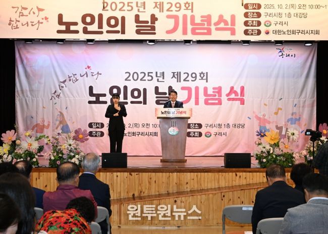 (원투원뉴스) 구리시는 노인의 날을 맞아 10월 2일 오전 10시 구리시청 1층 대강당에서 제29회 노인의 날 기념식을 열고 지역 어르신들과 뜻깊은 시간을 가졌다.