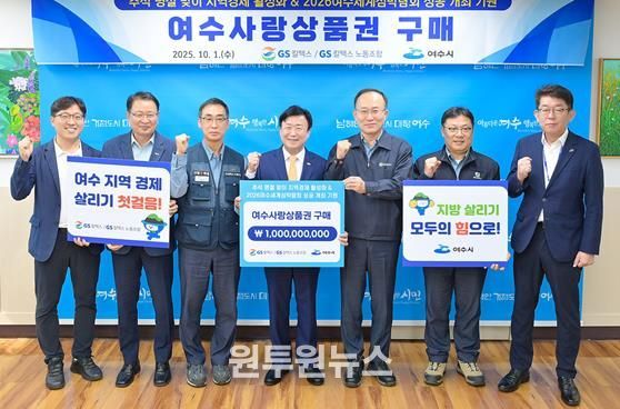(원투원뉴스) 여수시는 GS칼텍스가 추석 명절을 맞아 ‘여수사랑상품권 10억 원’을 구매해 지역경제 활성화와 2026여수세계섬박람회 성공 개최를 기원하며 지역 소상공인과의 상생 행보를 이어가고 있다고 밝혔다.