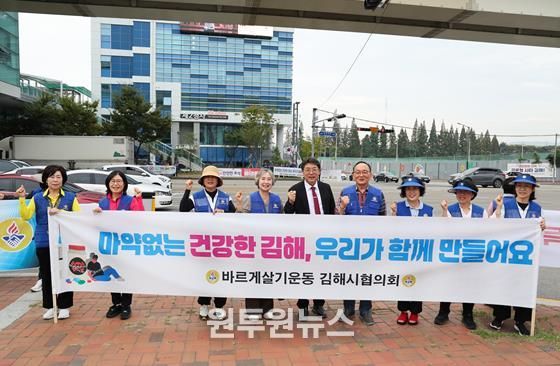 (원투원뉴스) 바르게살기운동 김해시협의회는 2일 오전 8시 김해시청 앞 사거리에서 ‘마약 근절 및 예방을 위한 합동캠페인’을 개최했다.