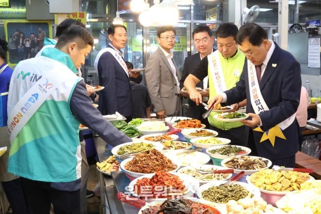 (원투원뉴스) 경주시는 2일 성동시장에서 추석 명절맞이 전통시장 장보기 행사를 열고, 주낙영 경주시장이 직접 장을 보며 상인들을 격려하고 물가 동향을 점검했다.