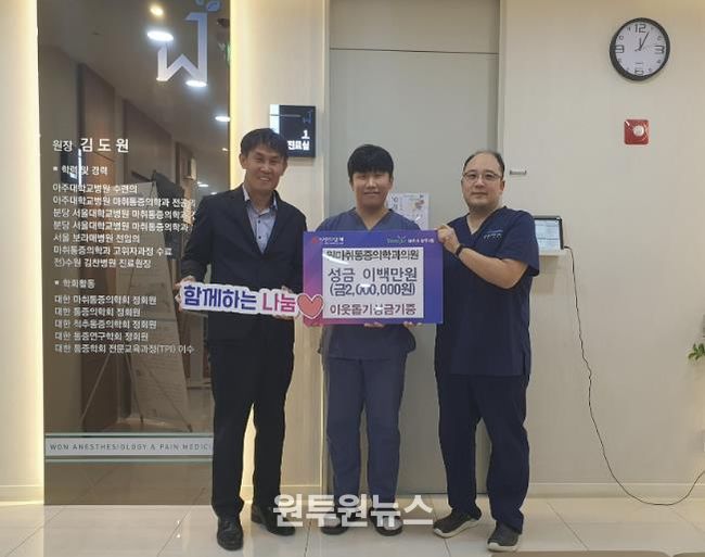 원마취통증의학과의원은 2024년부터 설과 추석 명절에 어려운 이웃을 돕고자 쌀, 라면, 김 등을 기부하며 꾸준한 선행을 이어나가고 있어 지역사회에 귀감이 되고 있다.