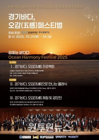 (원투원뉴스) (재)김포문화재단은 오는 10월 25일부터 26일까지 양일간 김포 아라마리나 문화광장에서 'Ocean Harmony Festival 2025, 경기바다 오감(五感) 페스티벌'을 개최한다고 밝혔다. 이번 행사는 한국경제TV 및 한경arteTV가 주관하고 경기관광공사가 후원한다.