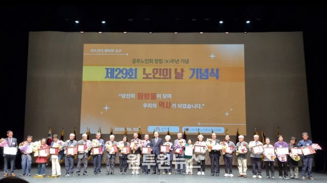 (원투원뉴스) 공주시는 2일 공주문예회관에서 각 기관·단체장과 노인회 회원 등 500여 명이 참석한 가운데 ‘제29회 노인의 날 기념행사’를 개최했다고 밝혔다.