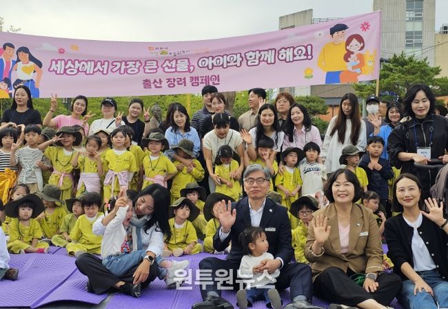 캠페인은 저출산 시대에 출산의 가치와 중요성을 알리고, 긍정적인 출산 문화를 확산하기 위해 마련됐다. 아이들은 아기 인형을 안고 직접 만든 전단지를 주민들에게 나눠주며 출산 장려 구호를 외쳤다.