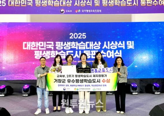 (원투원뉴스) 거창군은 지난 10월 1일 정부세종컨벤션센터에서 열린 제22회 대한민국 평생학습대상 시상식과 우수평생학습도시 시상식에서 우수 평생학습도시 선정 기념패를 수상했다고 밝혔다.